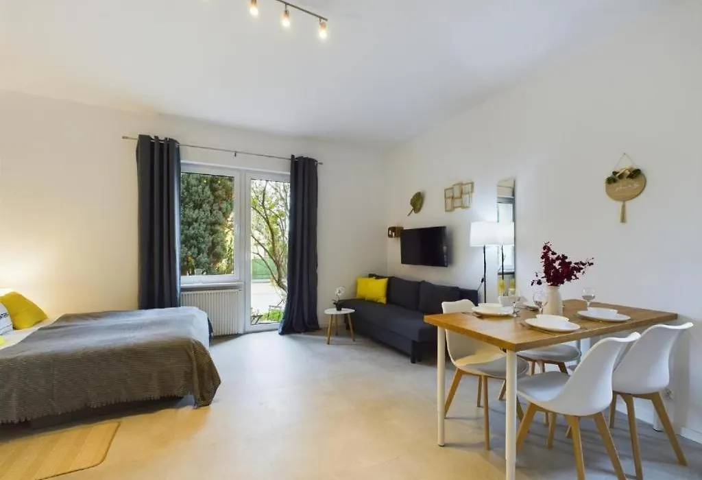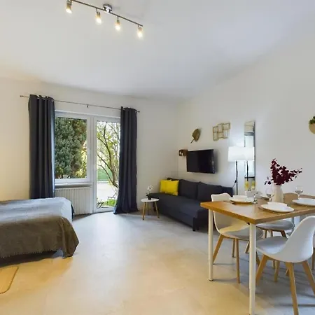 The property is equipped with a kitchen. Warsaw Frederic Chopin airport is at a 15-minute driving distance, and Dzialkowa 02 bus stop is in proximity to Nice Studio W Garden & Parking Near Warsaw Airport. Additional amenities include a terrace.